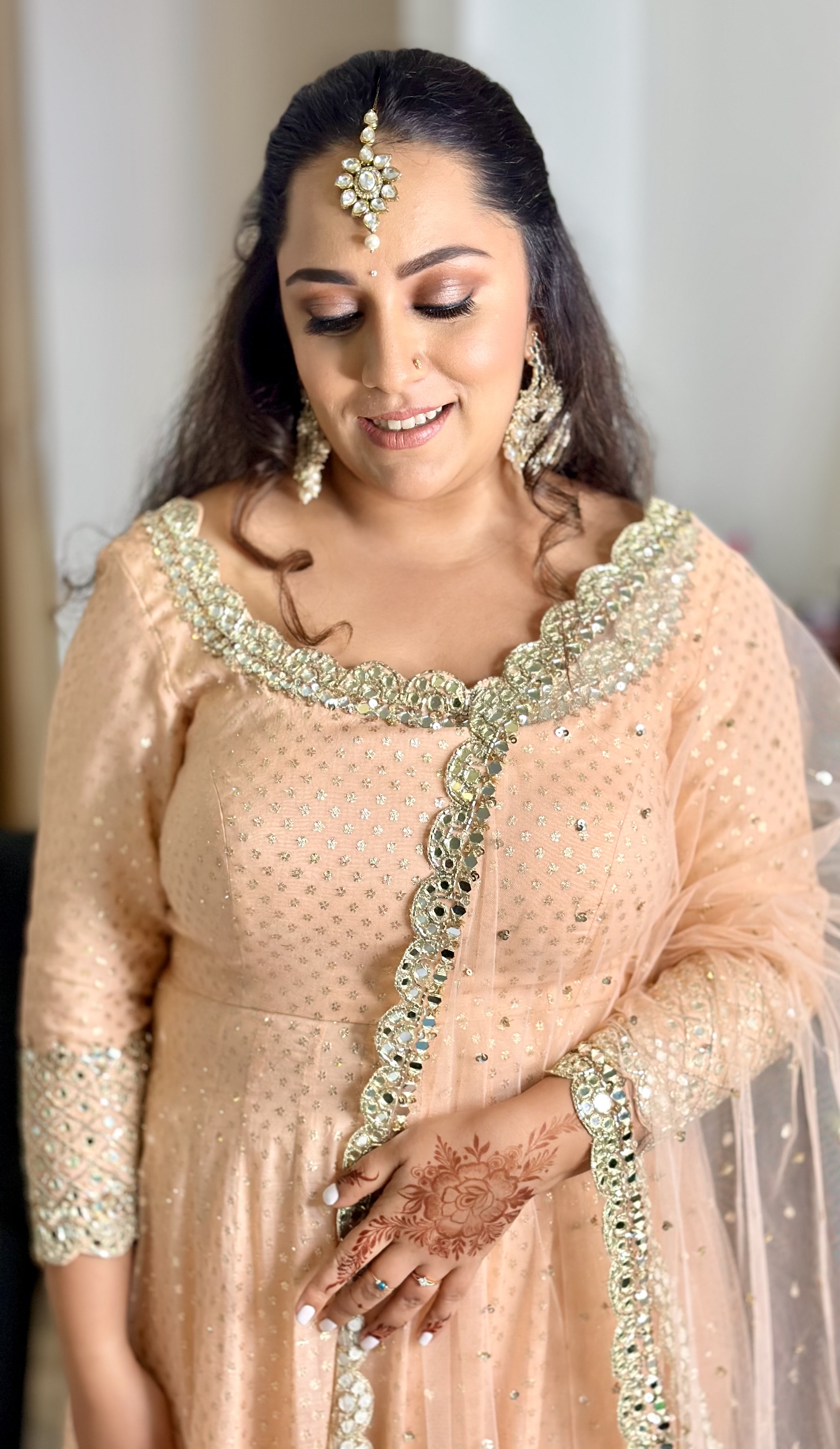 A close friend of mine introduced me to Preeti. I literally had not much time to plan things at my pace. Even in that short tome Preeti took out time. Zoom consultations for understanding things in a better perspective. My makeup was flawless( not cakey even after 8hrs) On the day of my wedding, I just closed my eyes and I let her do her work, the whole look was OMG not once I said anything(she knew exactly my imagination). I was speechless. Got so many compliments for my look. I cant thankyou enough.
