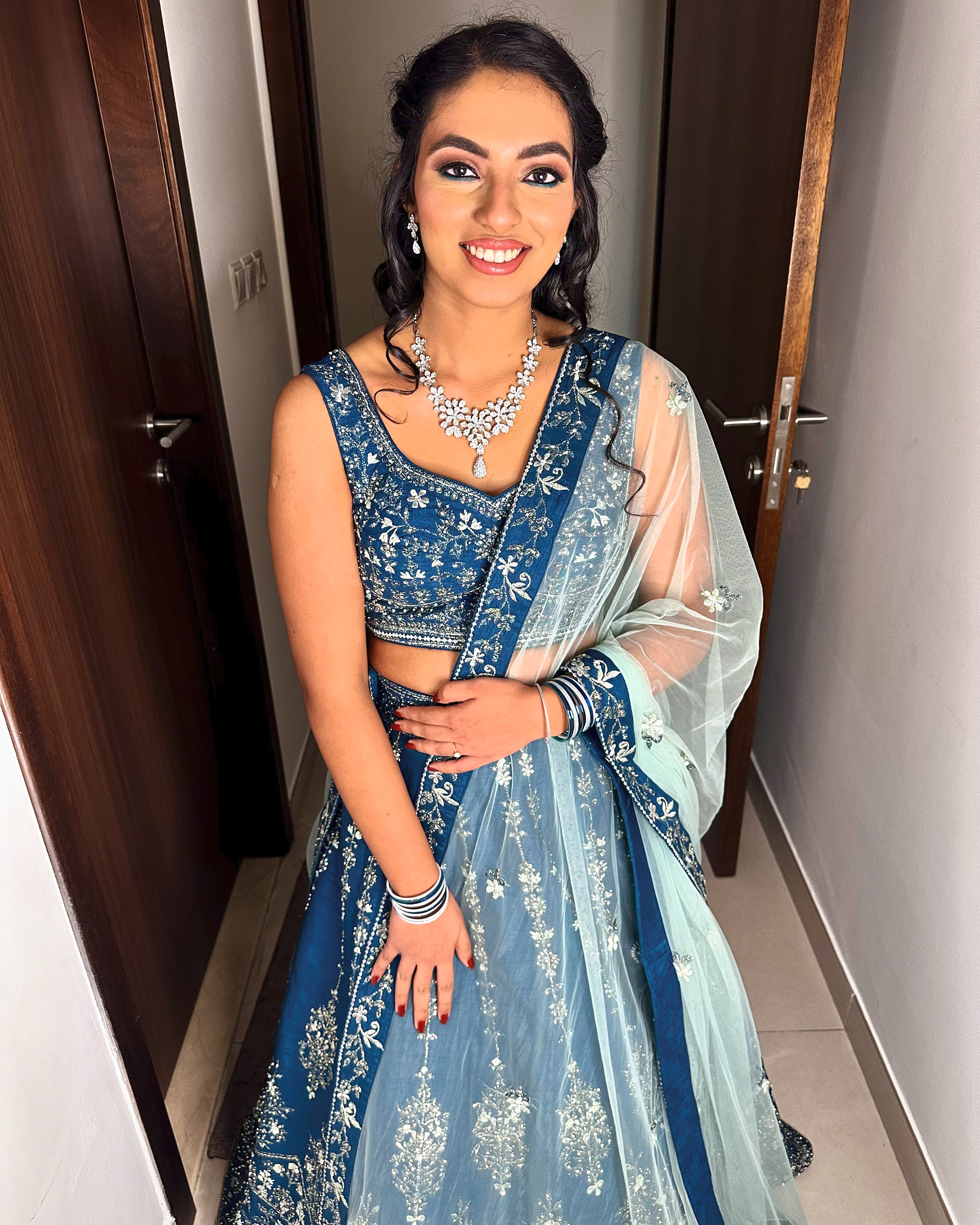 Hi Preethi. Thanks a ton for making my engagement day more special and perfect. Your talent is truly remarkable and I am grateful for the amazing makeover. I wanted a simple and elegant makeup without changing my skin color and I felt you had done a great job. I loved everything especially the eyes and hair.